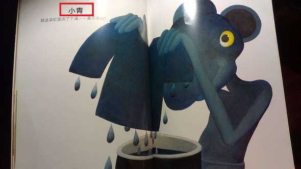 在下面这个页面,感觉应该是“小青”而不是“小蓝”,因为前面介绍了小红、小橙、小黄、小绿几个精灵,按照顺序读下来这页也应该是介绍小青的。