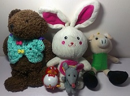 之前因为刚好设计了一个《大声回答“哎”》的读后游戏,所以这次也一起把游戏中需要的玩偶带过去,在讲玩故事后我拿出书中那些小动物玩偶跟妙妙一起玩了起来,因为她还不会说“哎”,听到自己的名字不会有意识地去答应,所以游戏主要是让她进行“动物认知”,妙妙非常喜欢那个小企鹅玩具,一直拿着不放,还尝试在嘴里咬,玩了一会她才注意到其他小动物,后来在大人的帮助下,她基本能听懂指令把玩偶放在书上对应的图上。