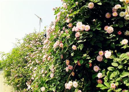 喜欢那丛蔷薇。 与我的住处隔了三四十米远,在人家的院墙上,趴着。我把它当作大自然赠予我们的花,每每在阳台上站定,目光稍一落下,便可以饱览它了。这个时节,花开了